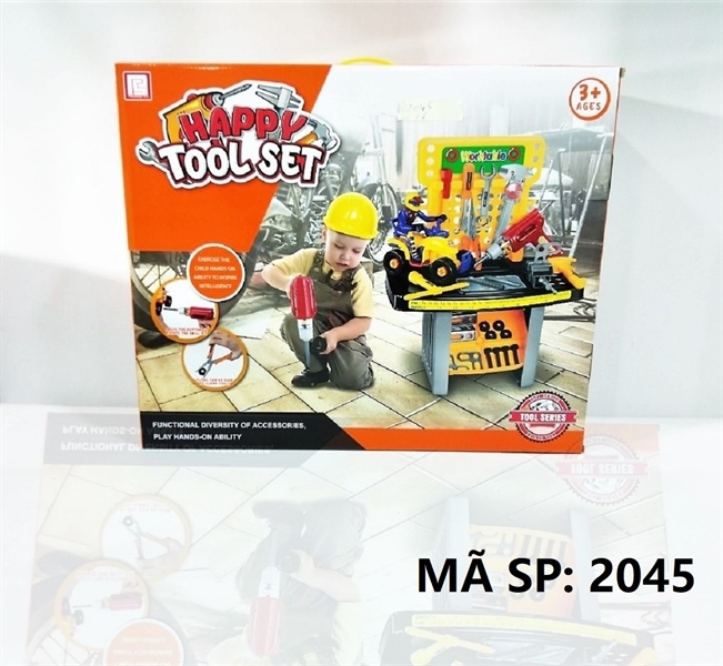 2045 HỘP KỆ KỀM BÚA, KHOAN PIN, ỐC VÍT, XE MOTO CÓ NGƯỜI RÁP ỐC VÍT 45 MIẾNG Happy Too Set