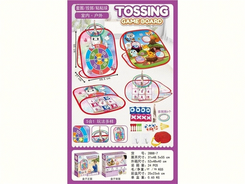 2888-7 HỘP TRÒ CHƠI THÚ 5 IN 1 (THẢY VÒNG, THẢY BANH, PHI TIÊU)