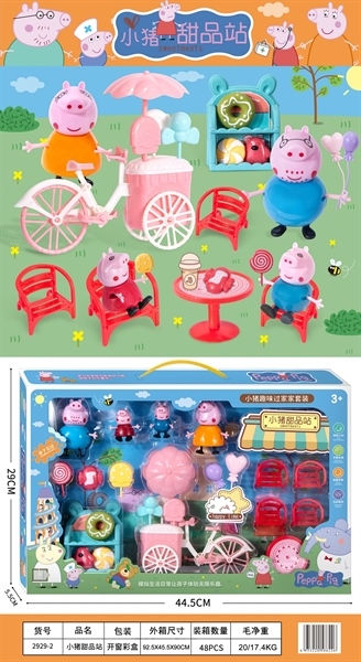 2929-2 HỘP GIA ĐÌNH HEO HỒNG 4C + XE ĐẠP ĐẨY KEM + QUẦY BÁNH + 4C GHẾ+ 1C BÀN