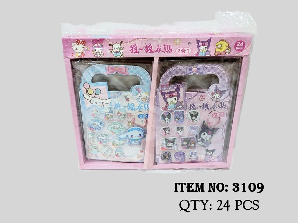 3109 HỘP 24 TÚI MIẾNG DÁN NỔI STICKER NƯỚC 2 IN 1 SANRIO ĐỦ MẪU
