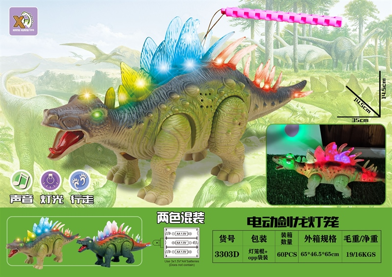 3303D KHỦNG LONG ĐI LƯNG ĐÈN PIN NHẠC (LỒNG ĐÈN)