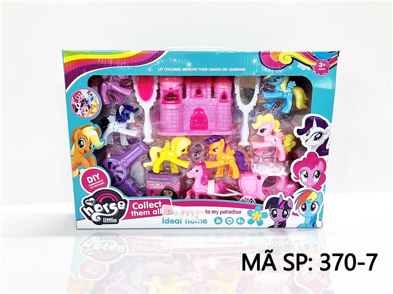 370-7 HỘP NGỰA PONY 6C + LÂU ĐÀI + XE NGỰA + GƯƠNG, LƯỢC, MÁY SẤY