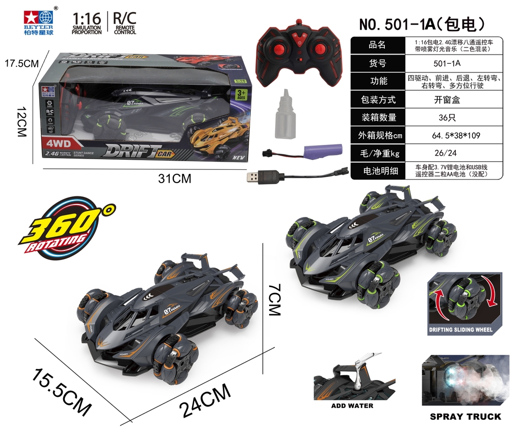 501-1A HỘP XE ĐỊA HÌNH ĐIỀU KHIỂN 7 ĐỘNG TÁC, CÓ SẠC, PHUN KHÓI