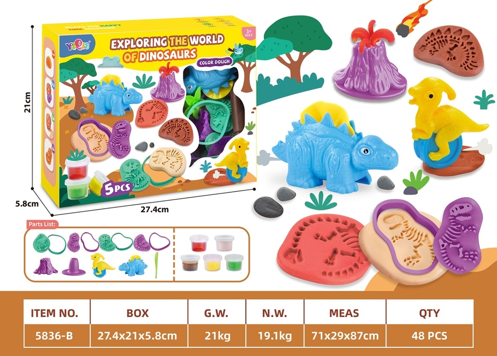 5836-B HỘP ĐẤT SÉT NẶN KHỦNG LONG 5 HŨ + KHUÔN