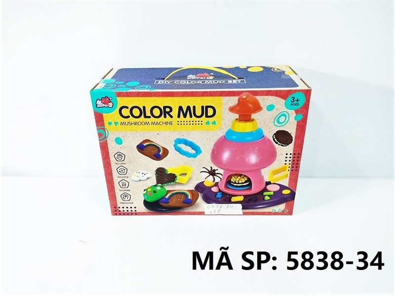 5838-34 HỘP ĐẤT SÉT LÀM BÁNH + MÁY ÉP HÌNH NẤM, KHUÔN, 5 HŨ Color Mud