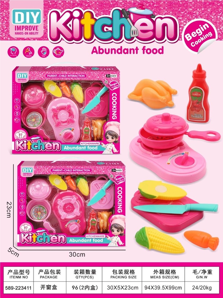 589-223411 HỘP BẾP GAS ĐƠN, TRÁI CÂY DÍNH, CHẢO, THỚT