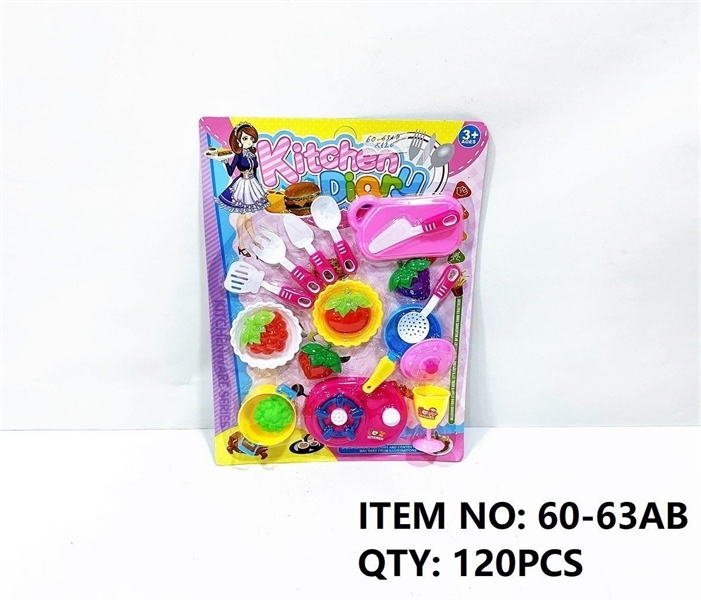 60-63AB VỈ BẾP GAS ĐƠN, NỒI, CHẢO, THỚT, LY, NHO, CÀ CHUA, SÚP LƠ, DĨA
