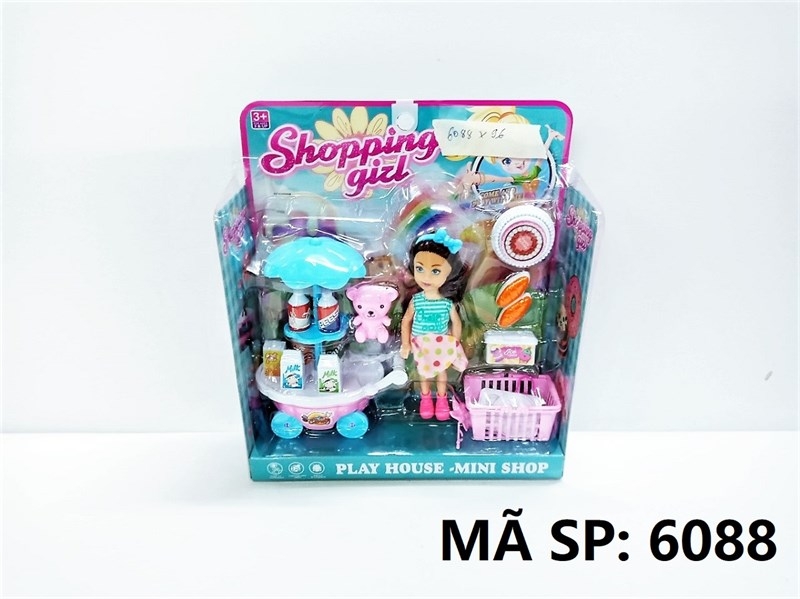 6088 VỈ HỘP BẾP XE ĐẨY DÙ SỮA, NƯỚC NGỌT, GIỎ ĐỒ, GẤU + 1C BABY