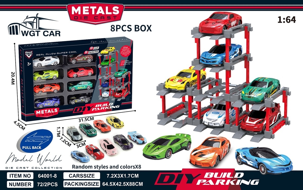64001-8 HỘP XE HƠI TRỚN 8C ĐỦ MẪU + BÃI ĐẬU XE