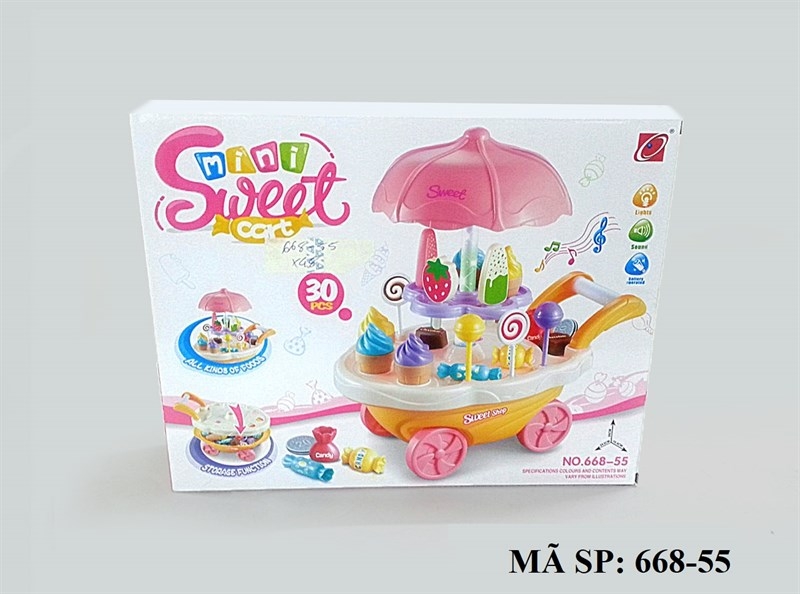 668-55 HỘP BẾP QUẦY XE ĐẨY DÙ PIN KEM, KẸO 30 MIẾNG