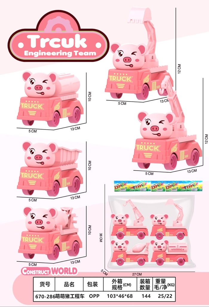 670-286 TÚI XE CÔNG TRÌNH TRỚN HEO 4C ĐỦ MẪU (BEN, BỒN, CÀO, CẨU)