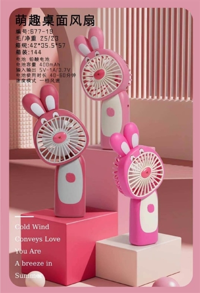 677-19 HỘP QUẠT THỎ HỒNG TAY CẦM PIN SẠC