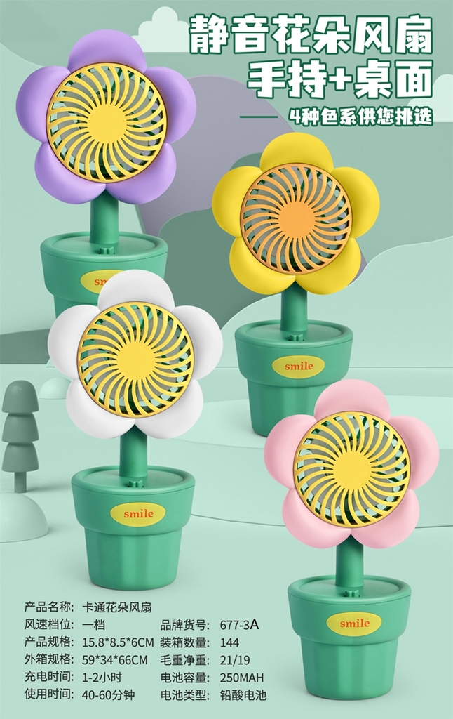 677-3A HỘP QUẠT BÀN PIN CHẬU HOA + SẠC USB