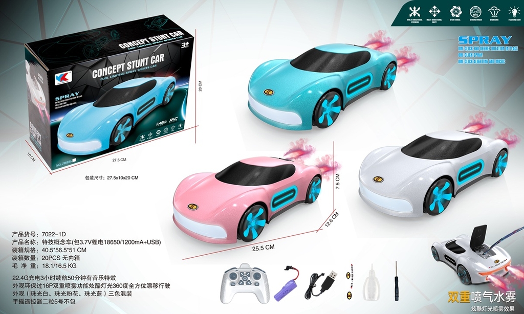 7022-1D HỘP XE HƠI ĐIỀU KHIỂN 7 ĐỘNG TÁC, PHUN KHÓI, CÓ SẠC