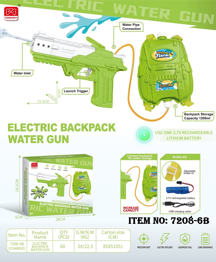 7208-6B HỘP CÂY BẮN NƯỚC BÌNH ĐEO BALO PIN CÓ SẠC