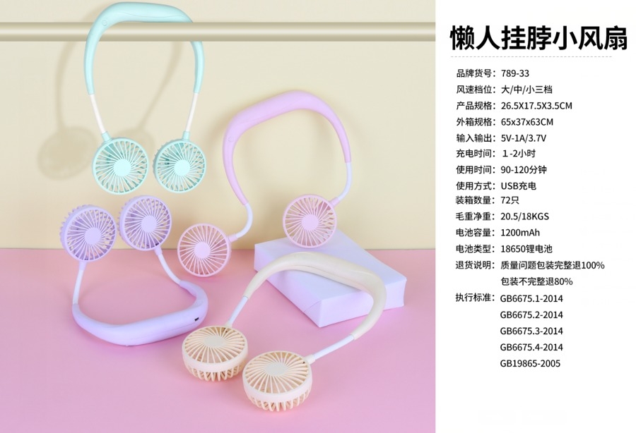 789-33 HỘP QUẠT PIN ĐEO CỔ + SẠC USB