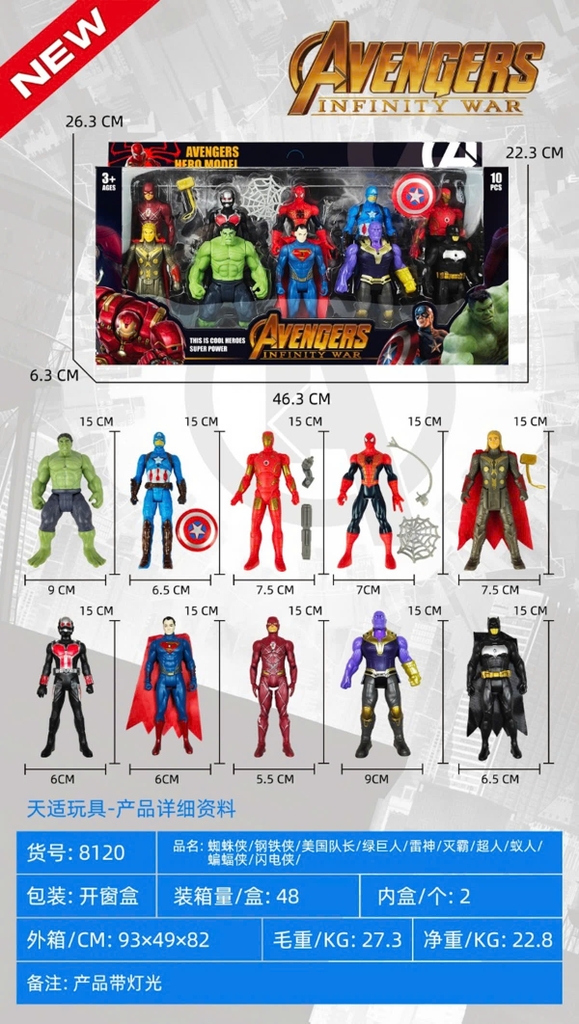 8120 VỈ HỘP SIÊU NHÂN AVENGER 10T PIN ĐÈN ĐỦ MẪU