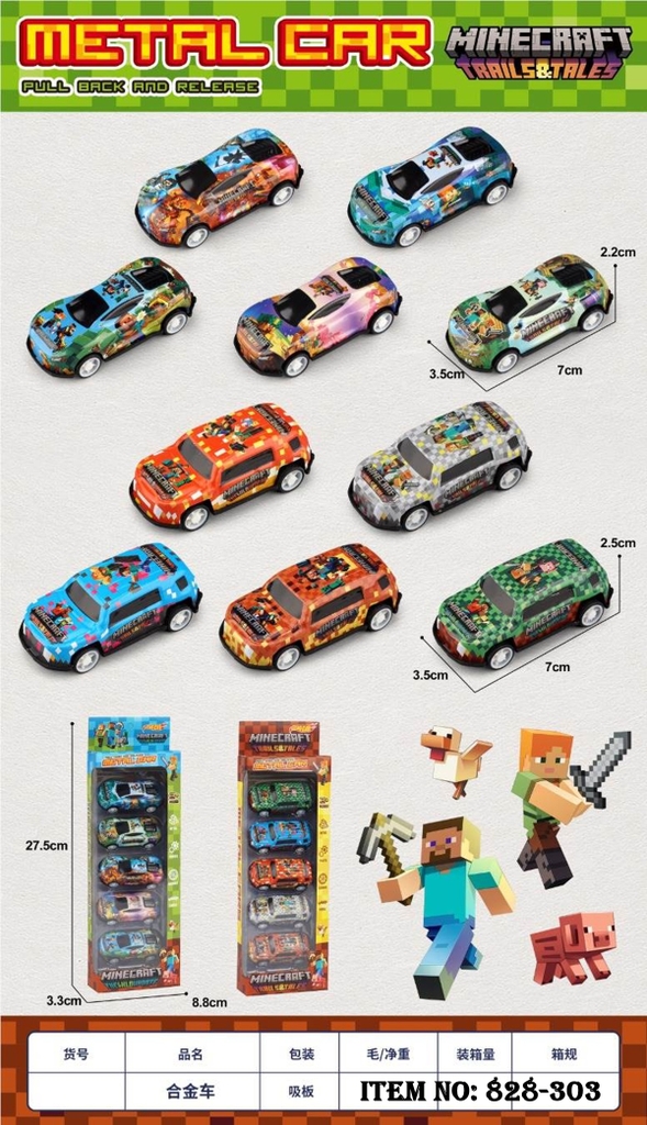 828-303 HỘP XE HƠI MINECRAFT TRỚN 5C ĐỦ MẪU