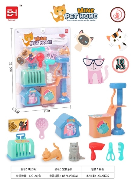 832-92 VỈ BÁC SĨ CHĂM SÓC THÚ CƯNG, LỒNG, KÉO, MÁY SẤY + 2C MÈO