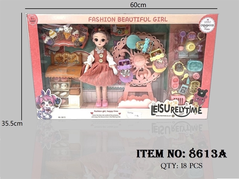8613A HỘP BABY 1C KHỚP, MẮT THỦY TINH + ĐU QUAY + QUẦY BÁNH + KEM + THÚ CƯNG