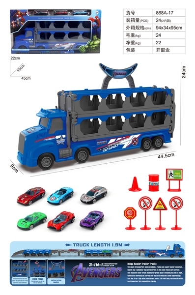868A-17 HỘP XE CONTAINER SẮT DÀI TRỚN CÓ BỆ PHÓNG + 6C XE HƠI SẮT