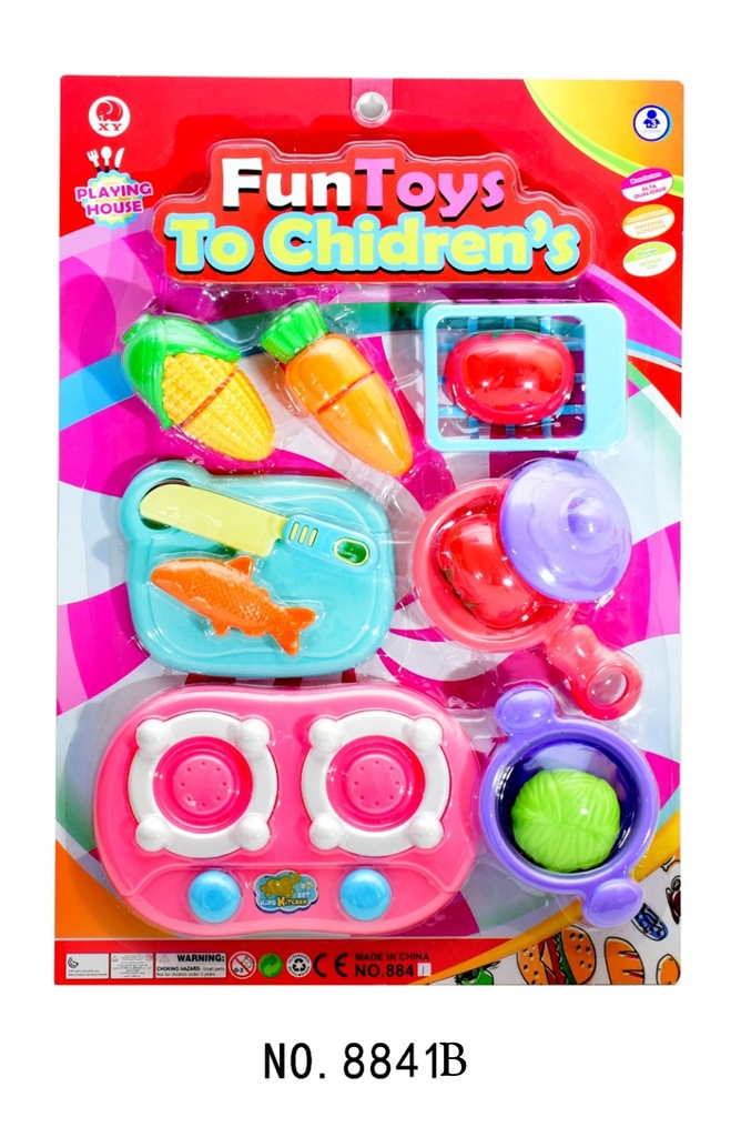 8841B VỈ BẾP GAS ĐÔI, THỚT, CHẢO, NỒI, TRÁI CÂY DÍNH