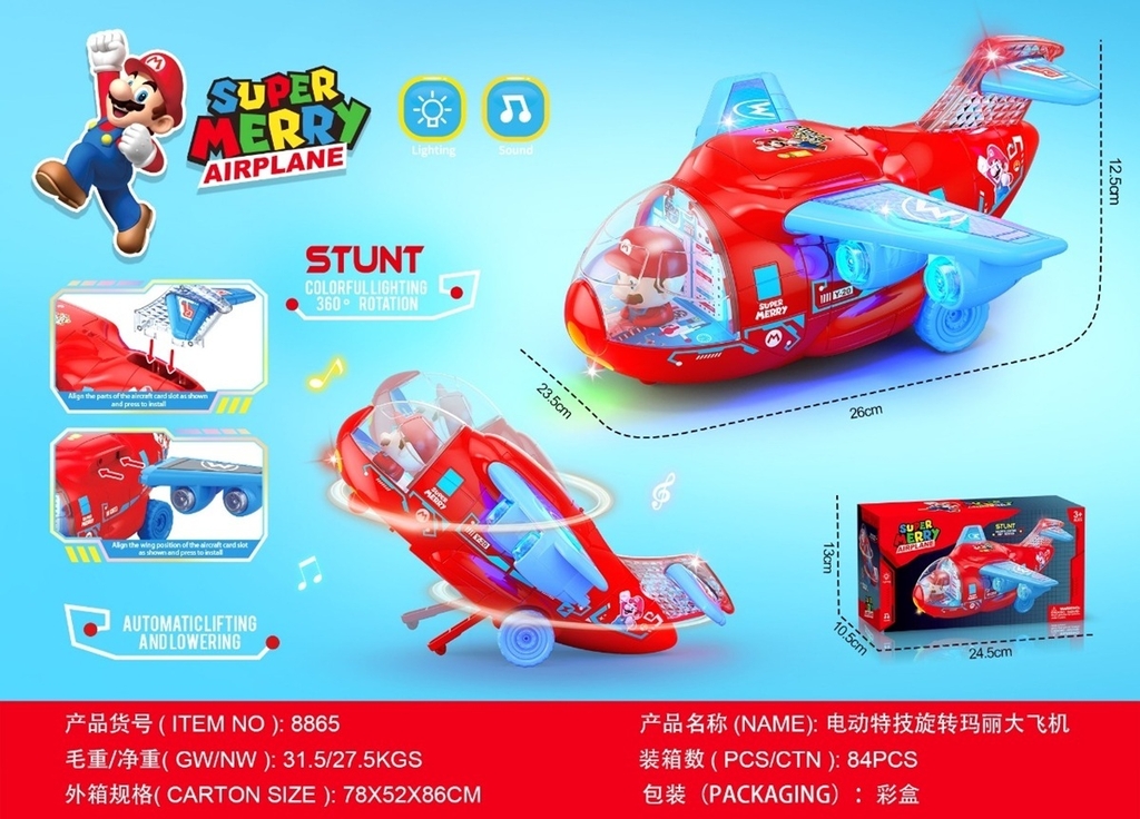8865 HỘP MÁY BAY RÁP CÁNH MARIO PIN ĐÈN