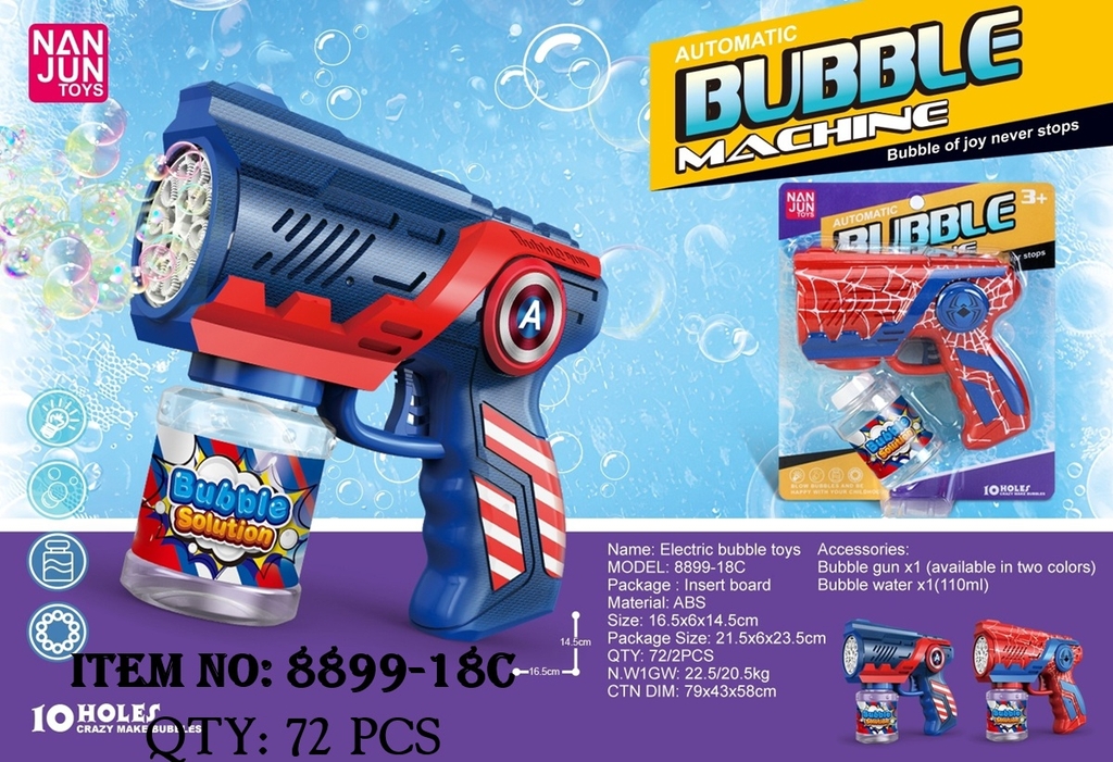 8899-18C VỈ CÂY PHUN XÀ BÔNG PIN NHỆN, ĐỘI TRƯỞNG MỸ 10 TIA