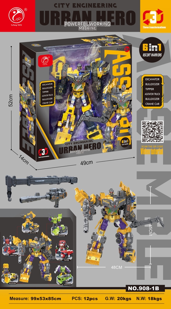 908-1B HỘP RÁP ROBO BIẾN HÌNH XE CÔNG TRÌNH ĐỦ MẪU