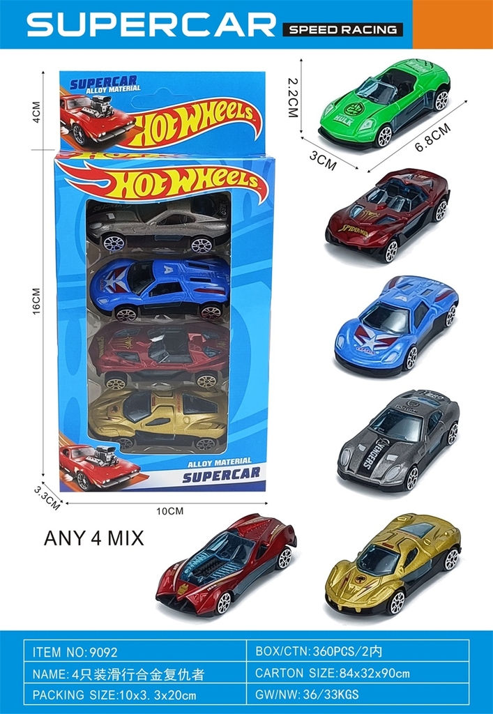 9092 VỈ HỘP XE HƠI SẮT TRỚN 4C ĐỦ MẪU