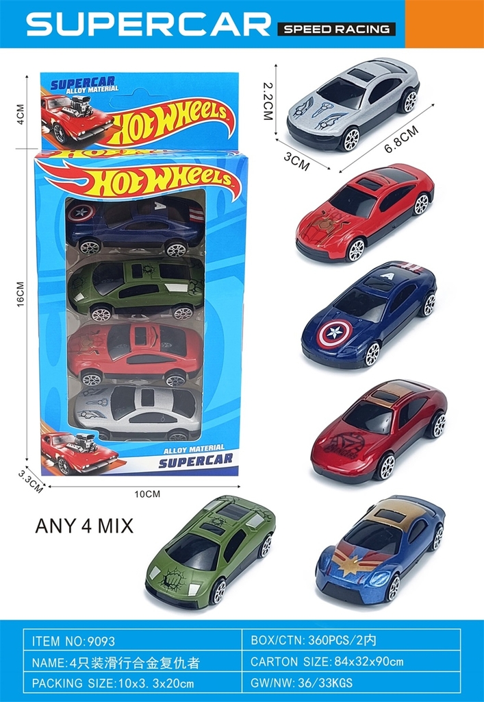 9093 VỈ HỘP XE HƠI SẮT TRỚN 4C ĐỦ MẪU