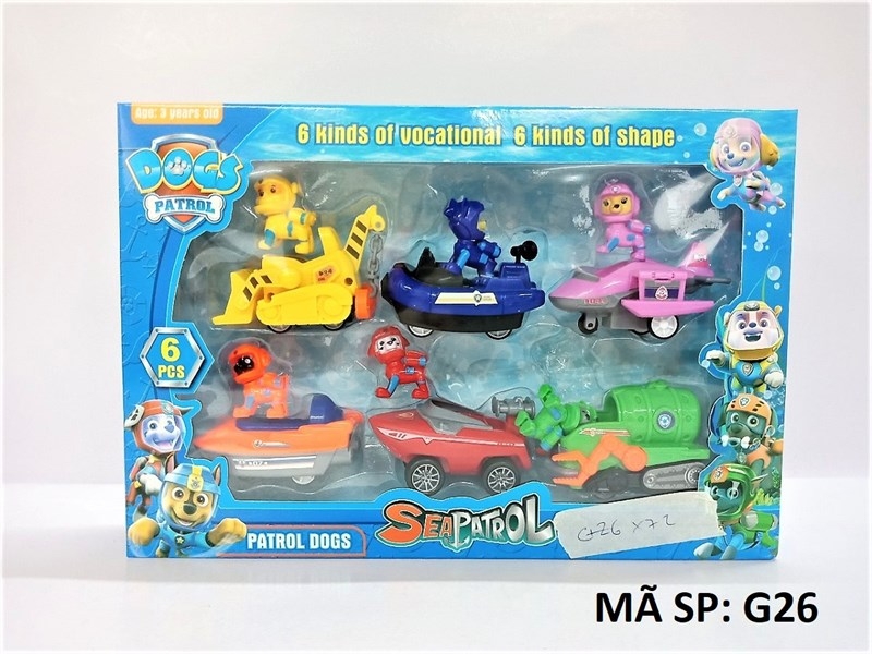 G26 HỘP XE CHÓ CỨU HỘ TRỚN 6C ĐỦ MẪU (MÁY BAY, XE LỬA, CÔNG TRÌNH, TÀU)