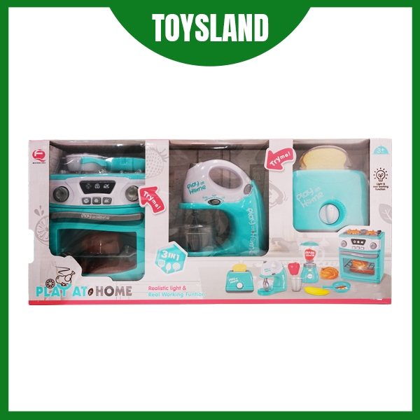 HỘP BẾP PIN 3 MÓN (BẾP GAS ĐÔI, MÁY TRỘN, MÁY NƯỚNG BÁNH MÌ) QF2572G, QF2574G Play at Home (XANH)