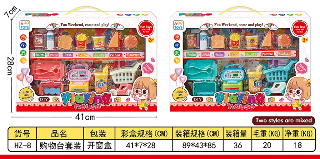 HZ-8 HỘP BẾP XE ĐẨY SIÊU THỊ, MÁY TÍNH TIỀN, RỔ, HAMBUGER, KHOAI TÂY