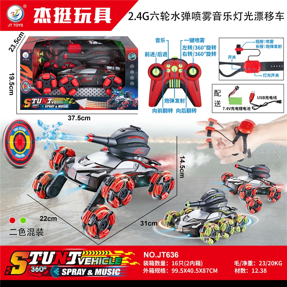 JT636 HỘP XE HƠI ĐỊA HÌNH ĐIỀU KHIỂN 7 ĐỘNG TÁC, CÓ SẠC, BẮN ĐẠN BI NƯỚC, ĐK ĐỒNG HỒ, 6 BÁNH, PHUN KHÓI
