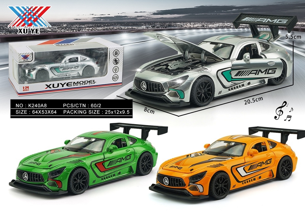K240A8 HỘP XE HƠI CẢN SAU SẮT MÔ HÌNH, MỞ CỐP TRƯỚC PIN NÚT NHẠC ĐÈN