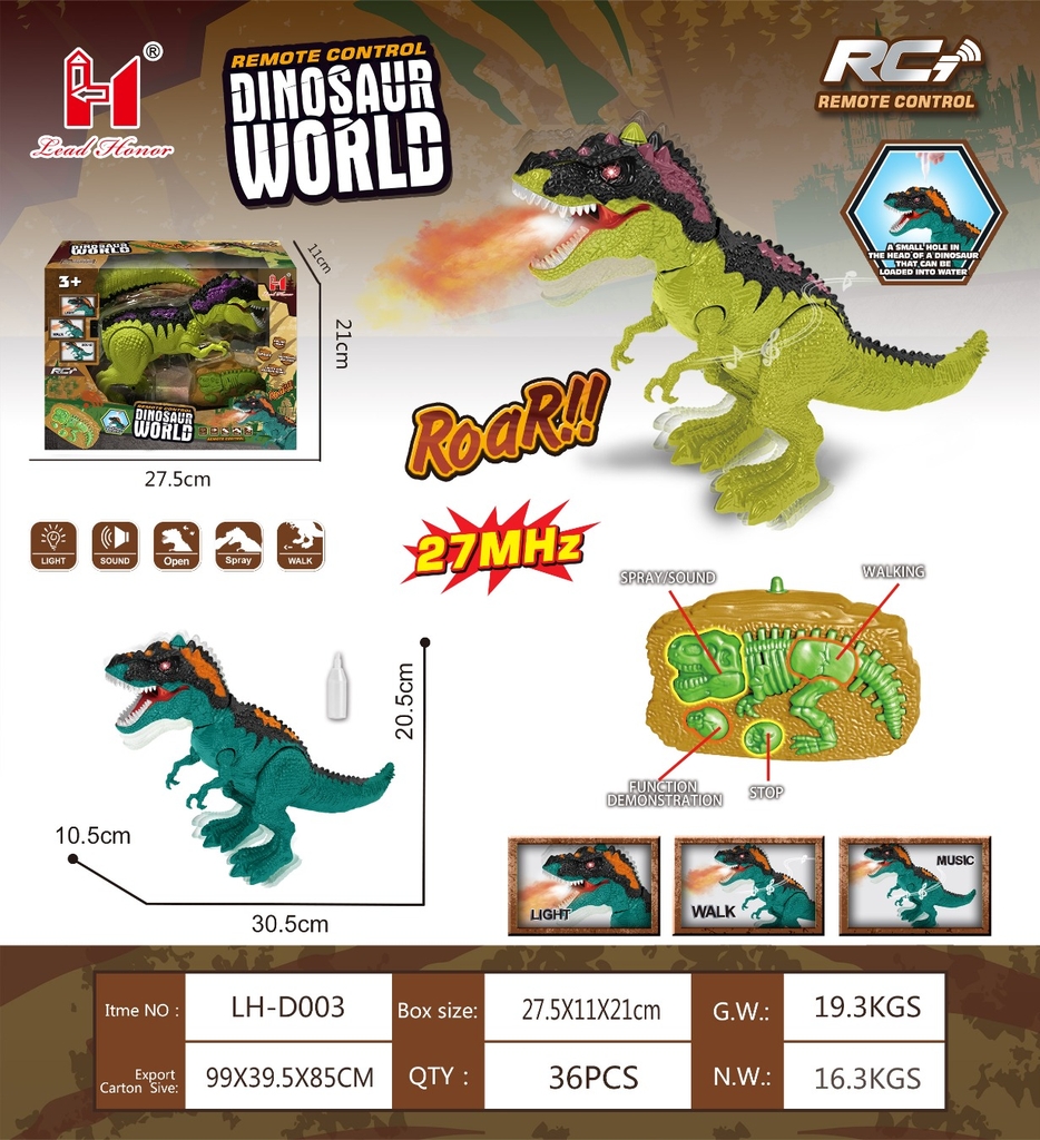 LH-D003 HỘP KHỦNG LONG ĐIỀU KHIỂN 3 ĐỘNG TÁC, PHUN KHÓI, CÓ SẠC