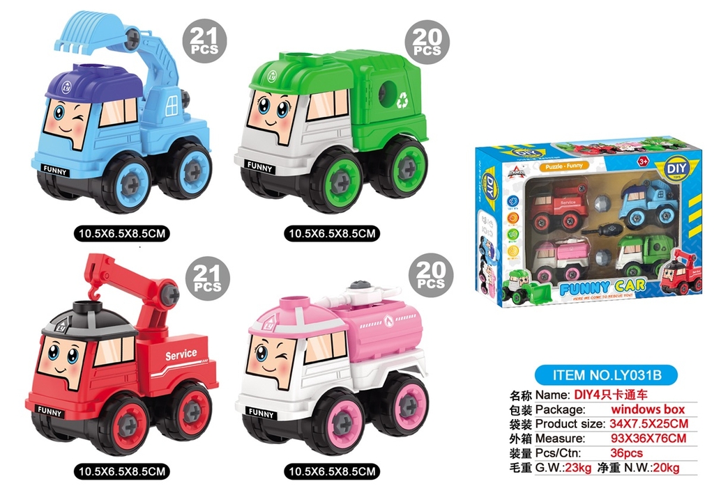 LY031B HỘP XE CÔNG TRÌNH POLI 4C ĐỦ MẪU (CẨU, CÀO, HỐT RÁC) + ỐC VÍT