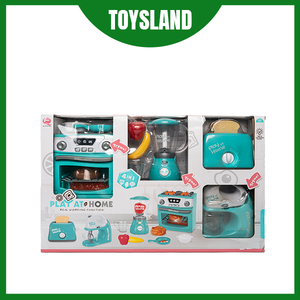 QF2571G HỘP BẾP PIN 4 MÓN (BẾP GAS ĐÔI, MÁY XAY SINH TỐ, MÁY NƯỚNG BÁNH MÌ, MÁY TRỘN) Play At Home (XANH)