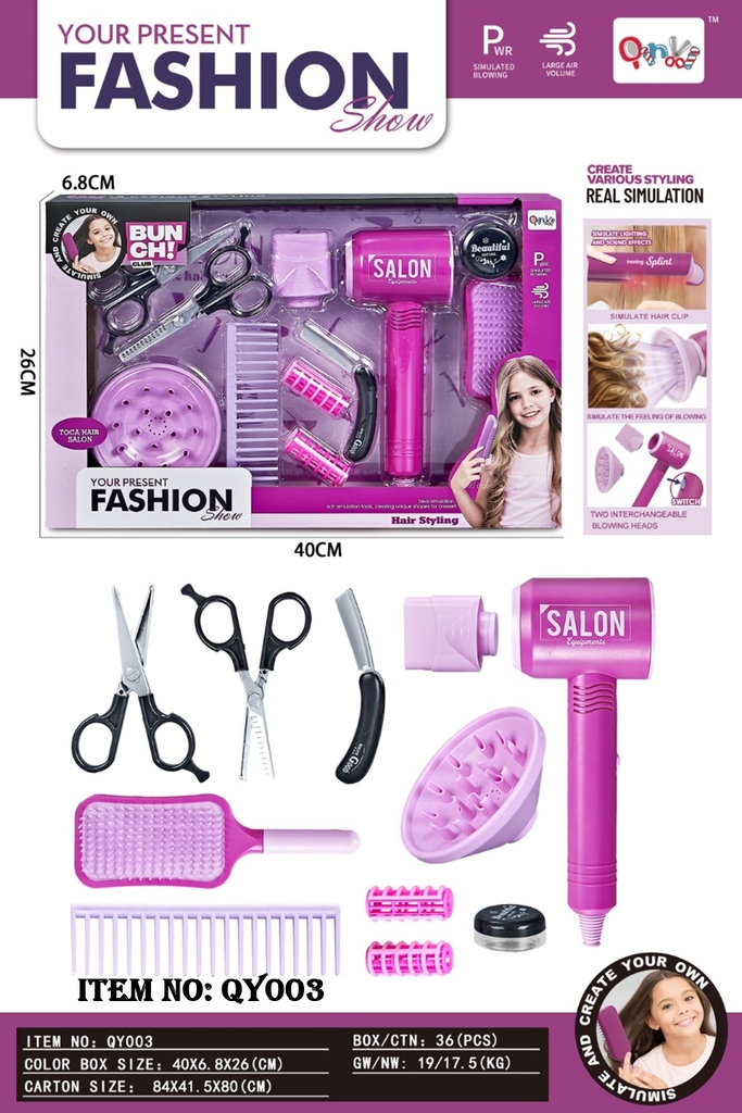 QY003 HỘP TRANG ĐIỂM LÀM TÓC, MÁY SẤY, LƯỢC, KÉO, DAO CẠO PIN