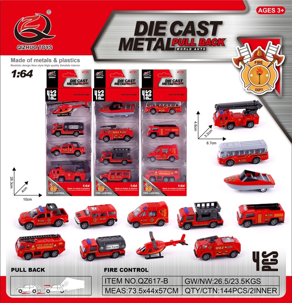 QZ617-B VỈ HỘP XE CỨU HỎA TRỚN 4C ĐỦ MẪU (TRỰC THĂNG, BỒN, CỨU HỎA)