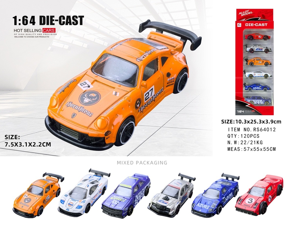 RS64012 VỈ HỘP XE HƠI SẮT CẢN SAU TRỚN 6C ĐỦ MẪU