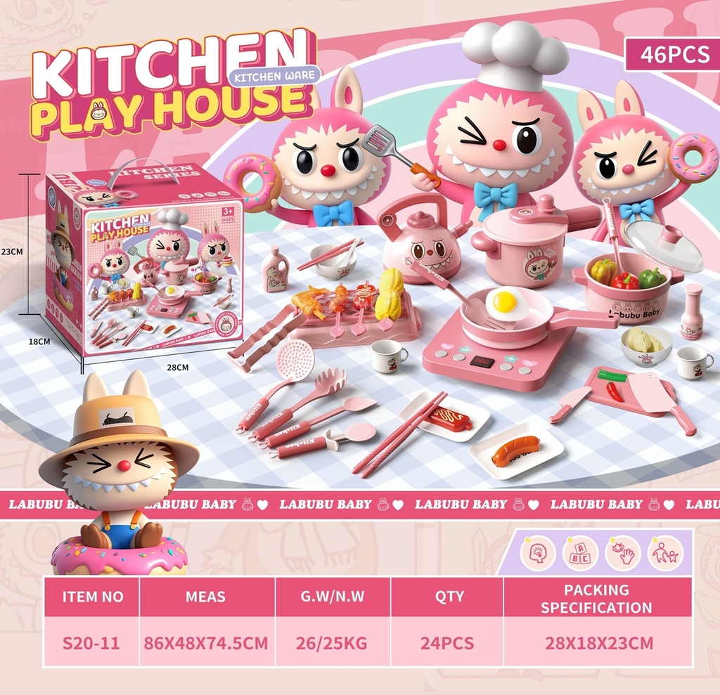 S20-11 HỘP BẾP ĐIỆN PIN ĐÈN, 2 NỒI, 1 ẤM, LÒ NƯỚNG LABUBU