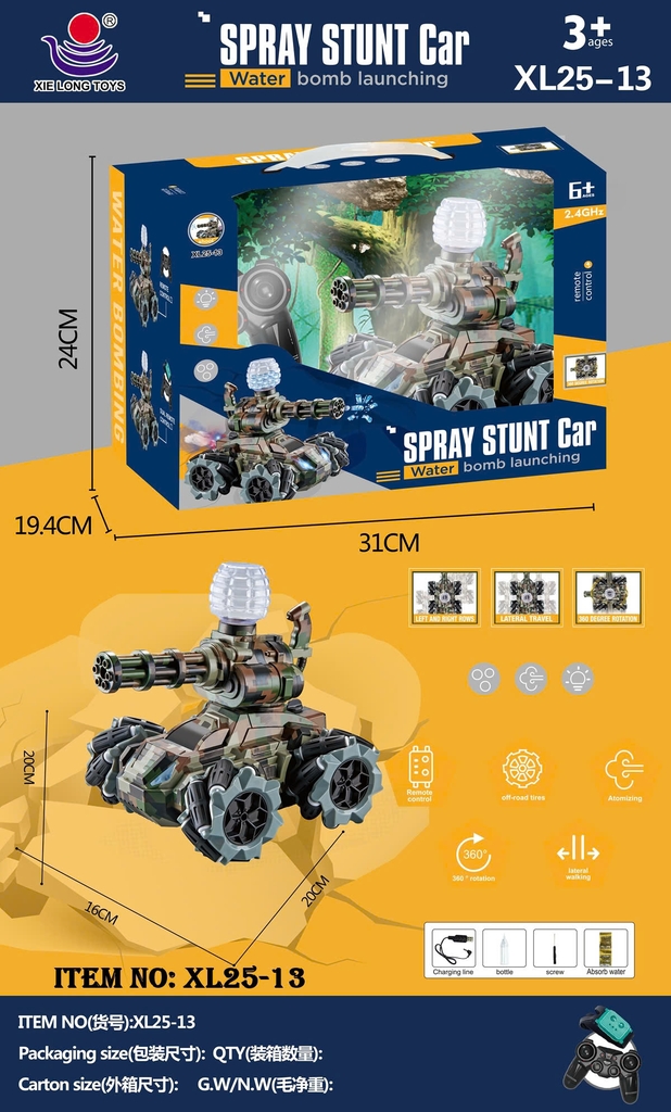 TP25-13 HỘP XE TĂNG ĐIỀU KHIỂN 7 ĐỘNG TÁC BẮN ĐẠN BI NƯỚC, CÓ SẠC, XOAY 360 ĐỘ BÁNH XOẮN (TIẾNG VIỆT)