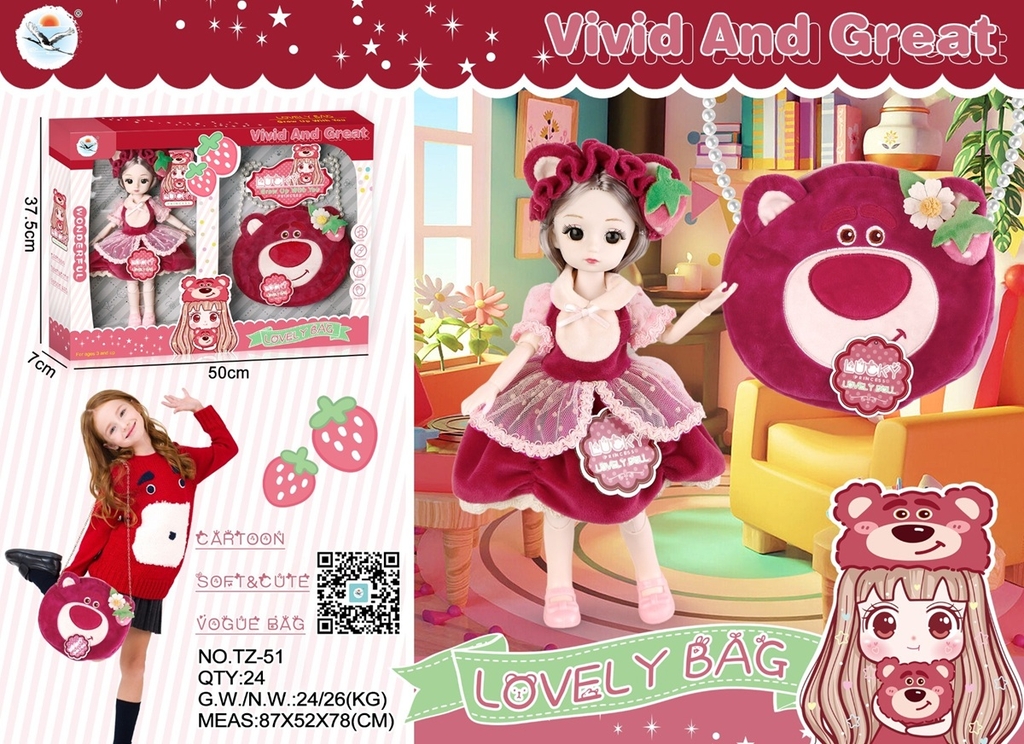 TZ-51 HỘP BABY 1C KHỚP, MẮT THỦY TINH + 1C GIỎ XÁCH GẤU DÂU