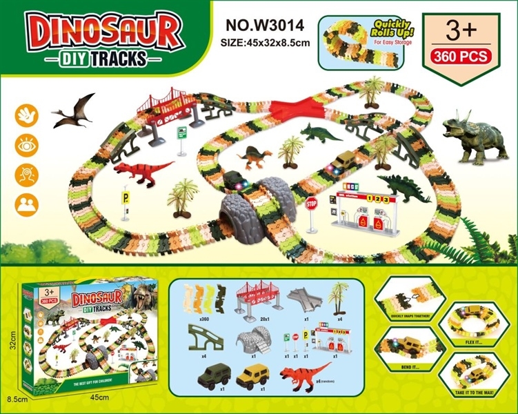 W3014 HỘP ĐƯỜNG RAY KHỦNG LONG PIN + 2C XE 360 MIẾNG