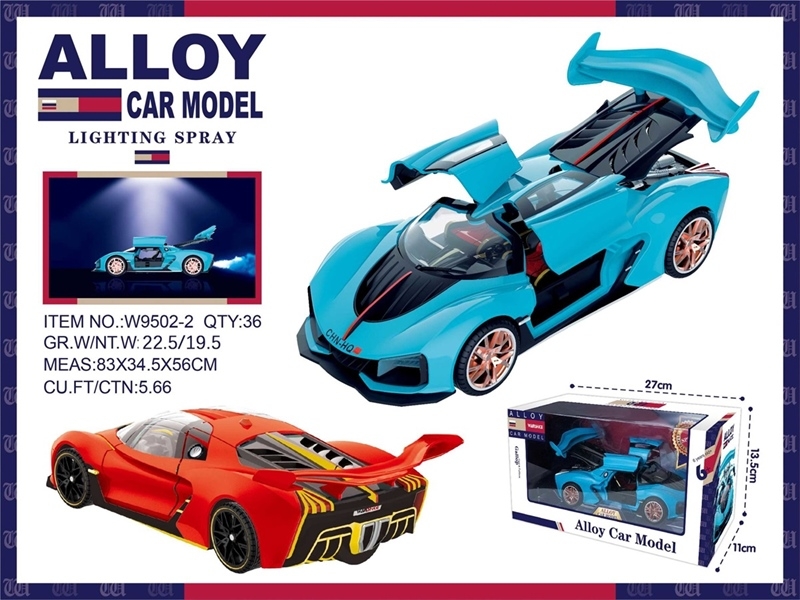 W9502-2 HỘP XE HƠI SẮT MÔ HÌNH PHUN KHÓI MỞ CỬA PIN