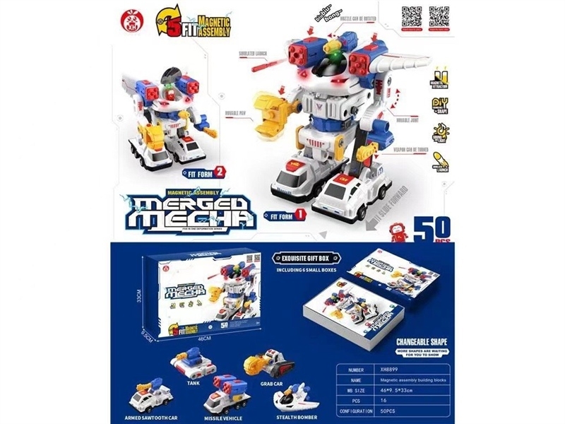XH8899 HỘP RÁP XE BIẾN HÌNH ROBO 50 MIẾNG PIN NÚT ĐÈN