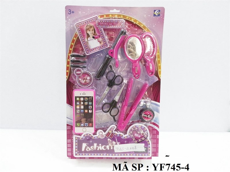 YF745-4 VỈ ÉP TRANG ĐIỂM+ ĐT IPHONE, MÁY DUỖI, 2C KÉO, GƯƠNG, LƯỢC, NƯỚC HOA, KẸP TÓC