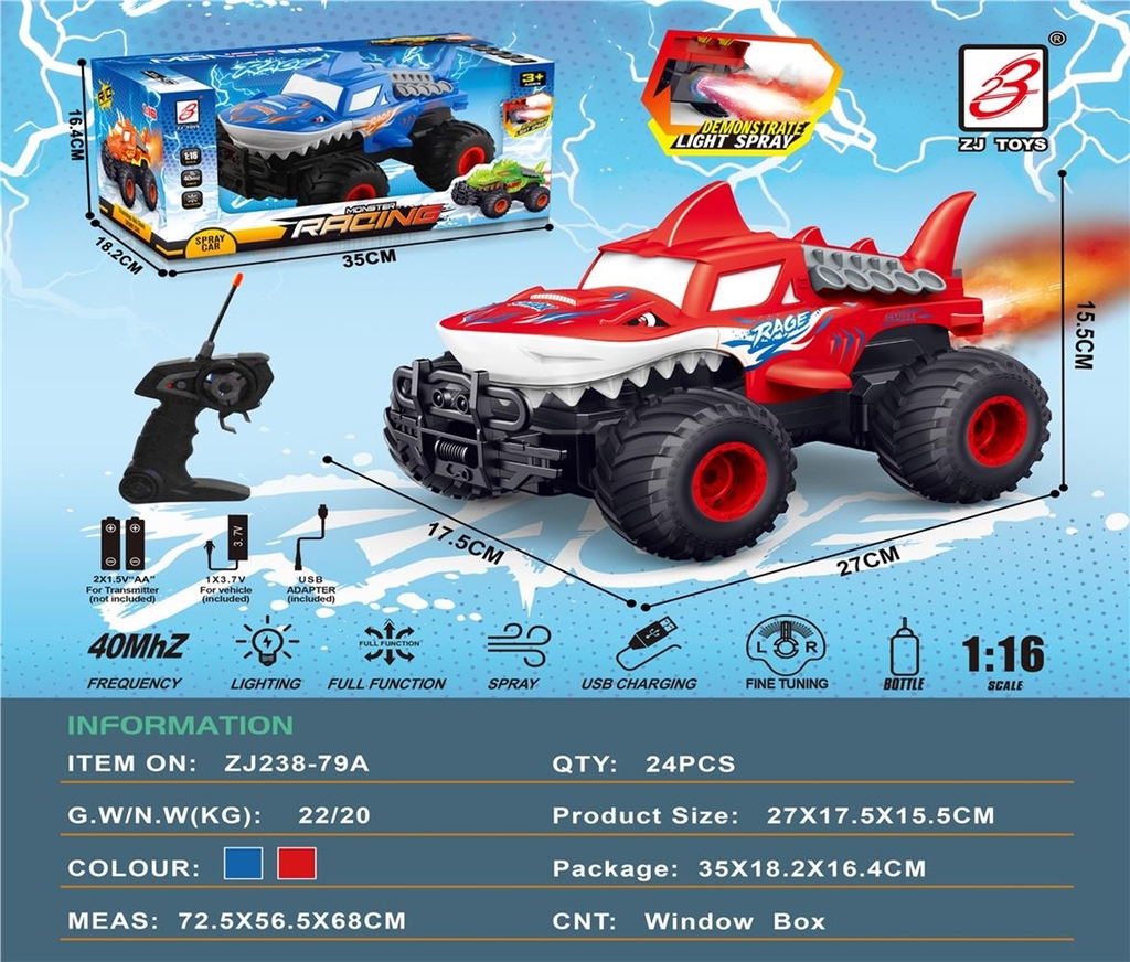 ZJ238-79A HỘP XE CÁ MẬP ĐIỀU KHIỂN 7 ĐỘNG TÁC, CẦN GẠT XOAY, PHUN KHÓI, CÓ SẠC